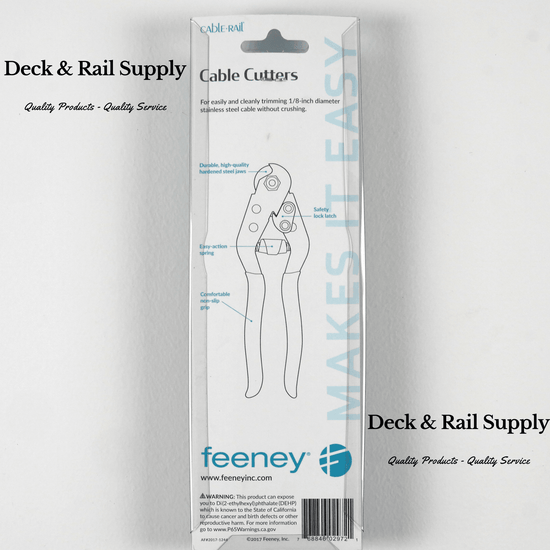 Feeney Cable Cutters are designed to easily and precisely cut 1/8" cable wire. Use to trim wires for build your own cable systems, or to trim excess from CableRail Kits.