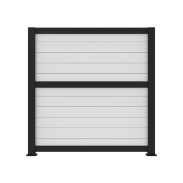 Privacy Rail posts and rails are made from strong powder coated aluminum, and securely accept the vinyl insert panels.