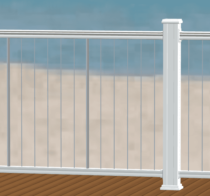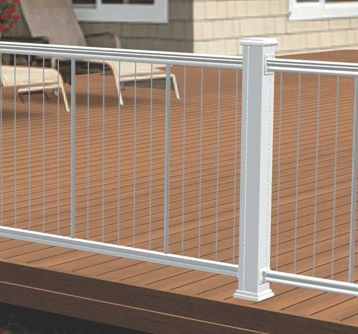American Vertical Rails must be cut to length, and installed between posts or vertical surfaces.
