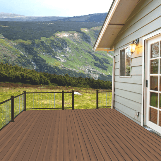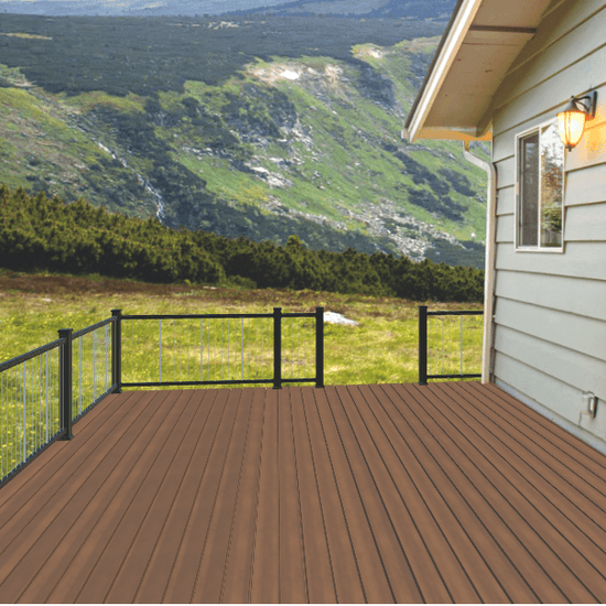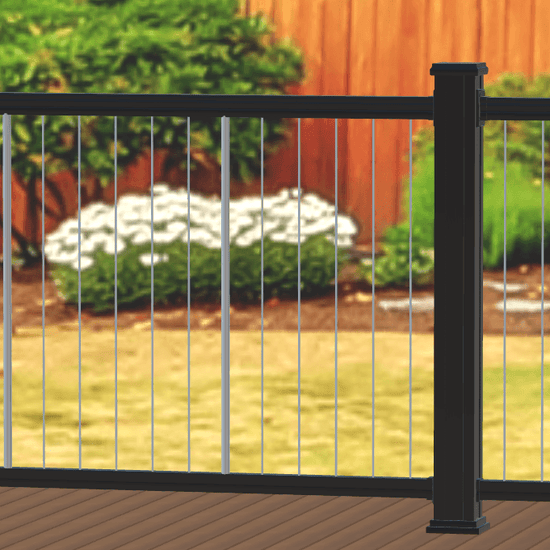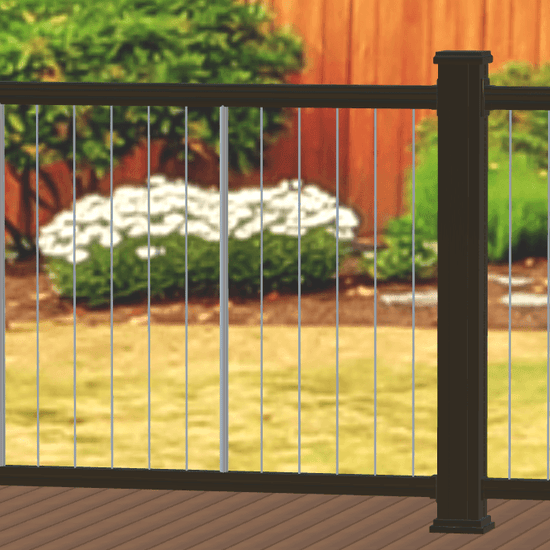 American Vertical Kits can be purchased in three textured profile colors: Black, Bronze, and White. Lengths of American Vertical Rail Kits available are 6-foot level, 8-foot level, 6-foot stair, and 8-foot stair.