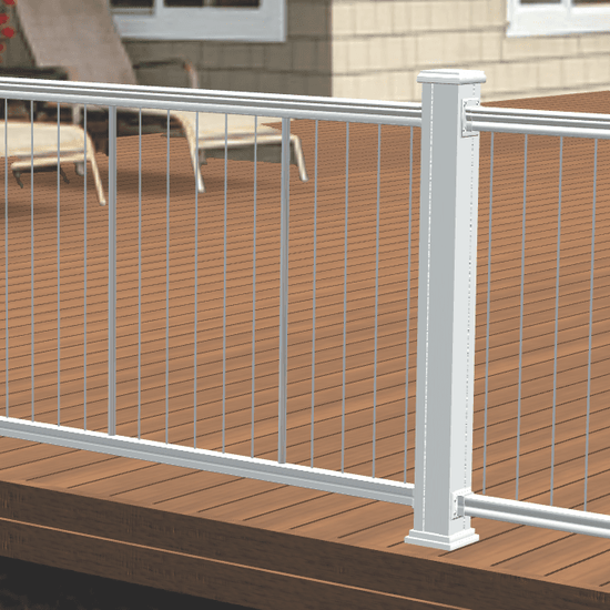 American Vertical Cable System by KeyLink employs the American-style flat top rail with cable strung vertically in a kit format. American Vertical can be paired with 2.5"x2.5" posts Key-Link Posts are not included and must be purchased separately.
