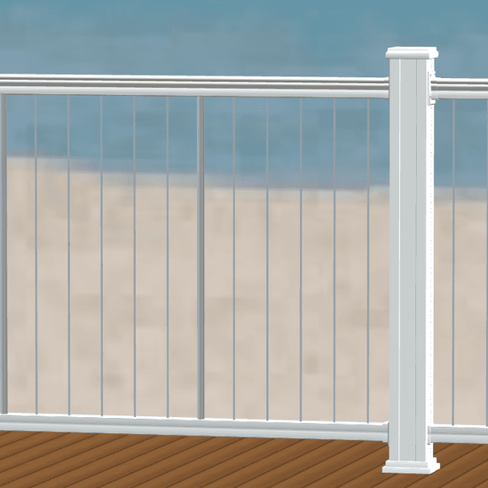 American Vertical Rails must be cut to length, and installed between posts or vertical surfaces.