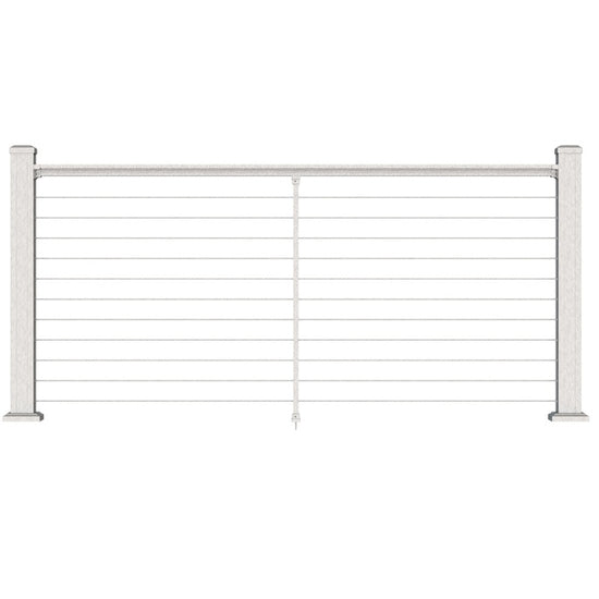 Chesapeake horizontal cable rail kits include top rail, intermediate cable picket, Chesapeake 2/pk mounting brackets with screws, and install guide.