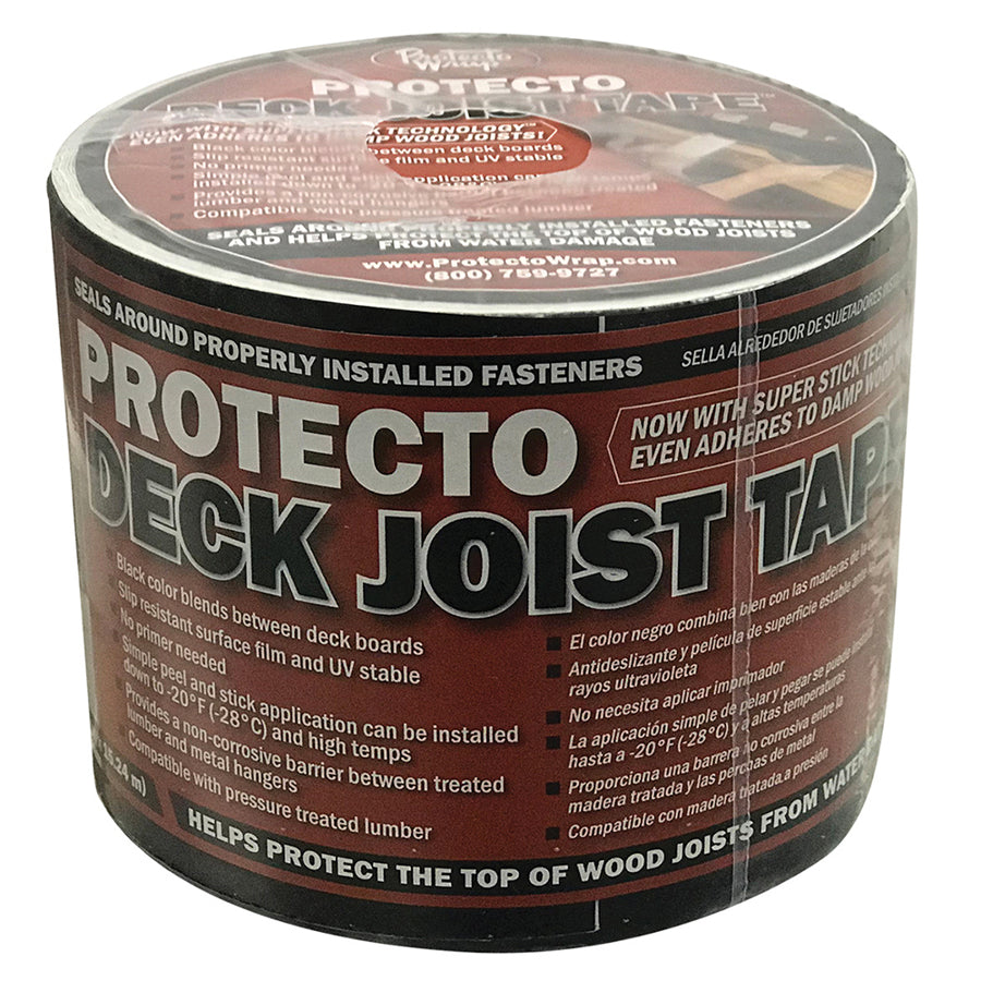 Super Seal Joist Deck Tape by Protecto adheres to the surface of 2x8, 2x10, and 2x12 treated pine joists to preserve and extend the life of the frame and the deck. The membrane is designed to limit the amount of water that penetrates the wood from the top where screws are installed, whether they are hidden fasteners or face screws.