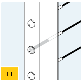 Feed cable through the TT post kit and attach the nut on the back on the threaded terminal of the Cable Kit The cable will feed through the (QC) Quick Connect Modern Post or (QCS)